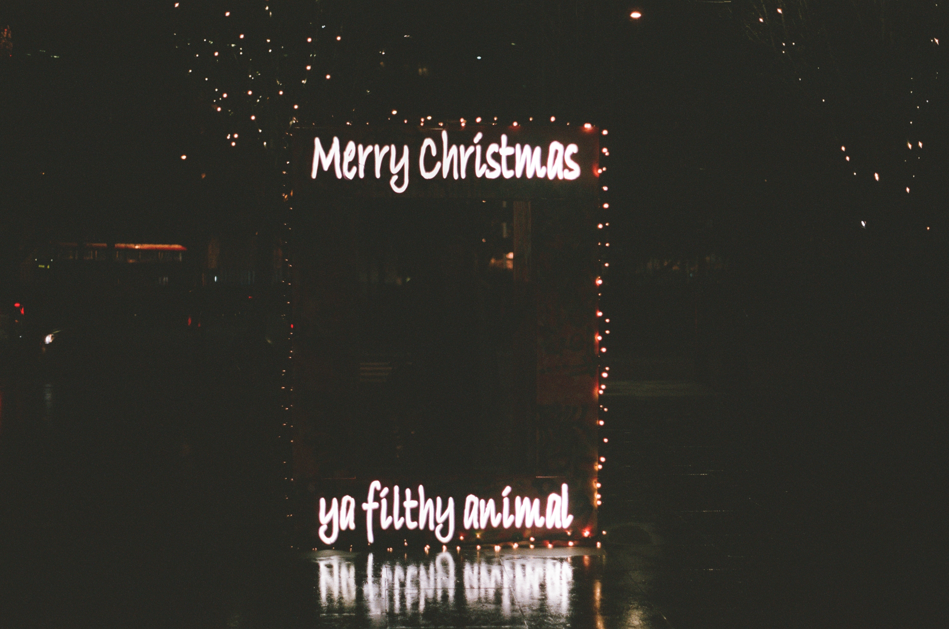 The OM 30’s light meter did a great job of metering for the bright Christmas lights, but my wife is nowhere to be seen standing in the middle of this sign. I don’t think I could’ve made this shot work without either blowing out the highlights or losing the shadow detail, which is shame. Luckily for her, I managed to get a decent snap on my iPhone.