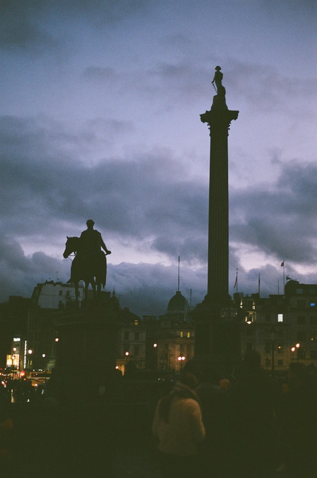 I love the statues silhouettes against the moody London sky, once again showcasing the famous green shadow tones of Fuji Superia. I would try to get even less shadow detail in a retake, capturing just the silhouettes against the clouds. I should have waited to take the shot as the figure in the foreground is distracting.